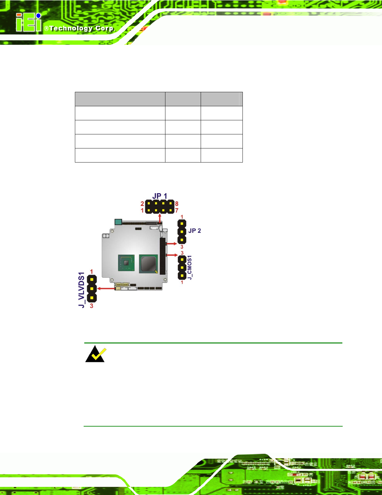 The PM-945GSE-N270 CPU board has four onboard jumpers (Figure 4-2).