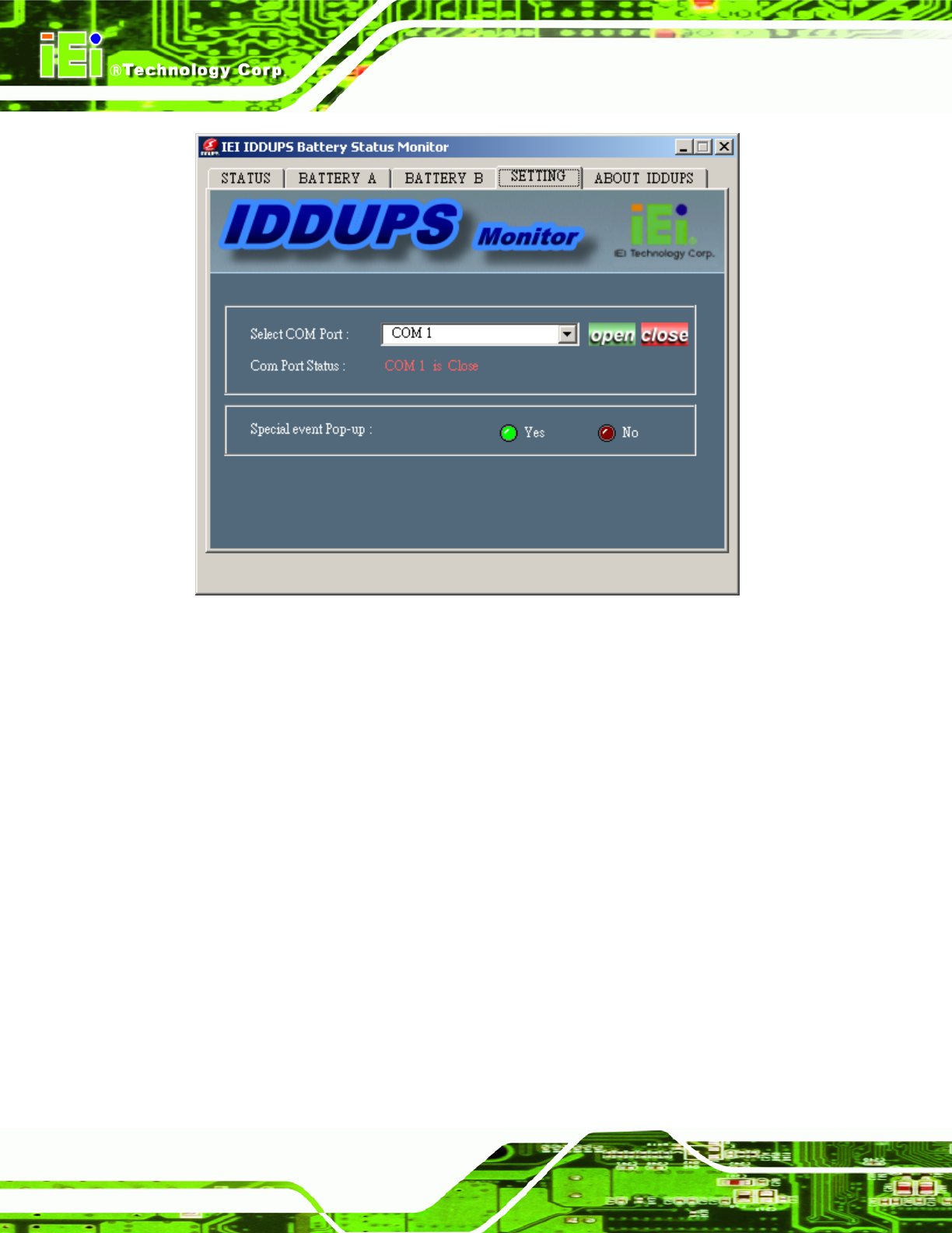 When the IDDUPS Battery Status Monitor application starts up, the user need to click the
