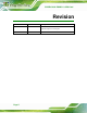 SPCIE-C2160 PICMG 1.3 CPU Card Revision Date Version Changes 24 April, 2014 1.01 Modified LAN pinouts Updated Chapter 2: Packing List 7 May, 2013 Page ii 1.