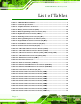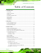 TANK-600 Em b e d d e d S ys te m Lis t o f Ta b le s Table 1-1: TANK-600 Model Variations .........................................................................................3 Table 1-2: Technical Specifications ..............................................................................................5 Table 4-1: Peripheral Interface Connectors ...............................................................................29 Table 4-2: Battery Connector Pinouts (BAT1) ............................