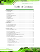 TANK-820 Em b e d de d S ys te m Ta b le o f Co n te n ts 1 INTRODUCTION.......................................................................................................... 1 1.1 OVERVIEW.................................................................................................................. 2 1.2 MODEL VARIATIONS ................................................................................................... 3 1.3 FEATURES .................................................................