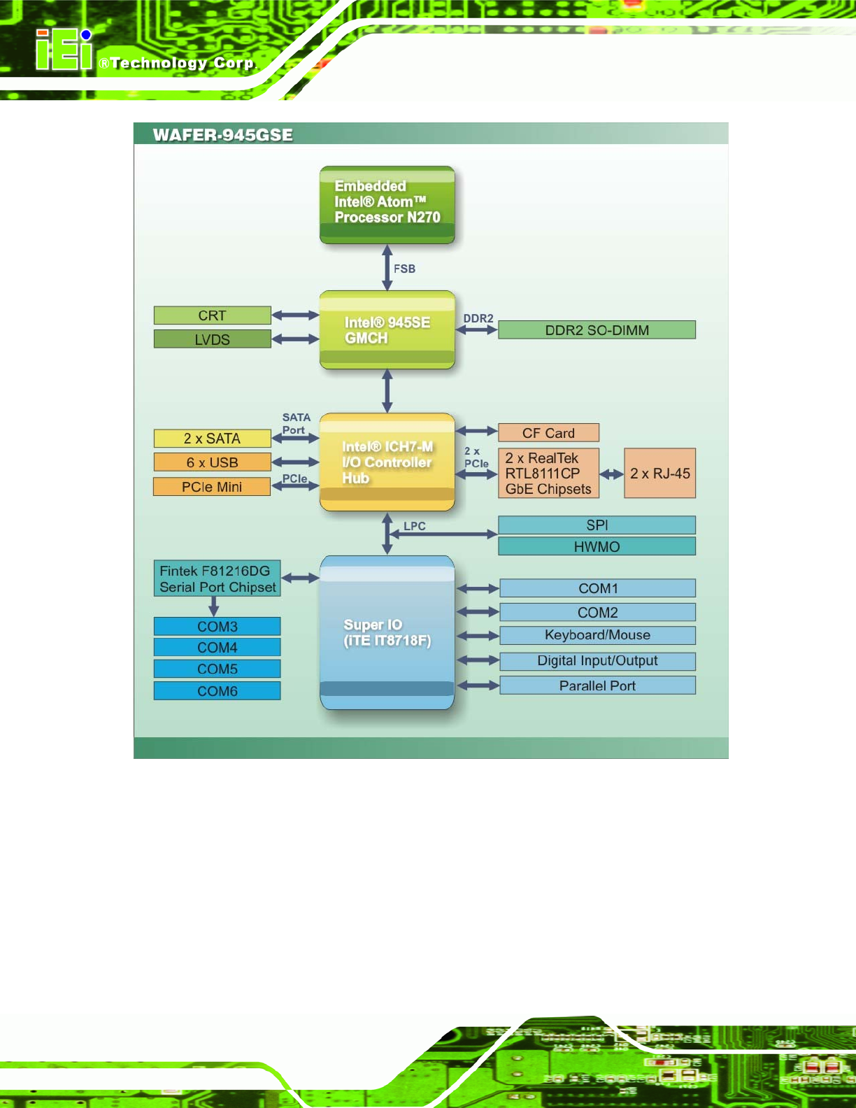 The WAFER-945GSE comes with an embedded 45 nm 1.60 GHz Intel® Atom™