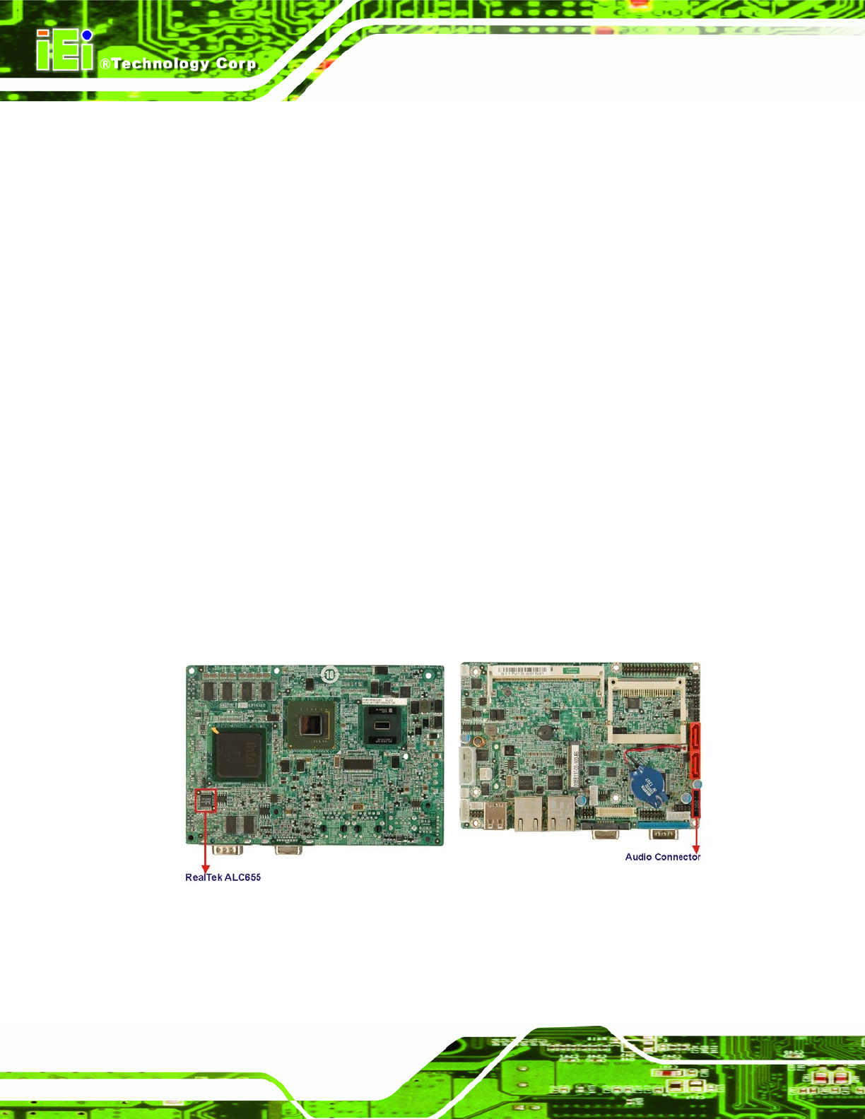 audio codec. The RealTek ALC655 is in turn connected to onboard audio connectors,