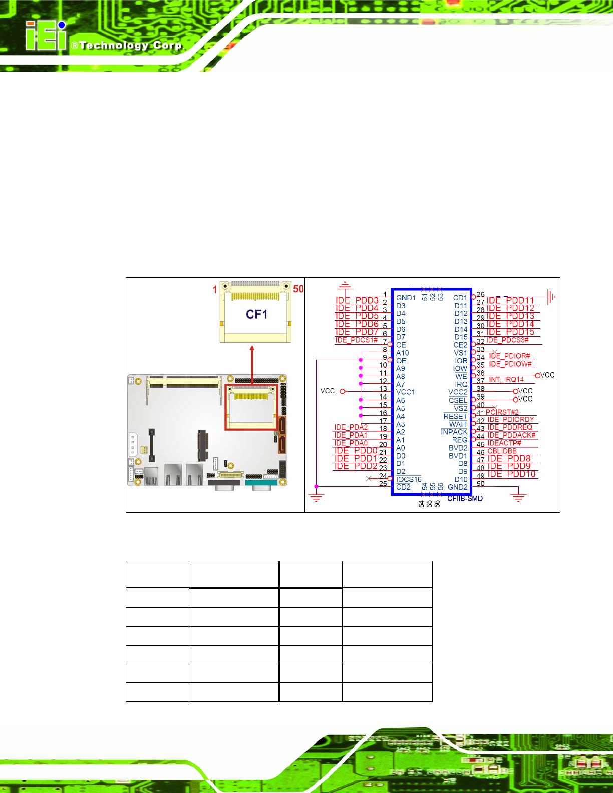 A CF Type I or Type II memory card is inserted to the CF socket on the solder side of the