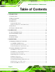 WAFER-945GSE2 3.5" Motherboard D.3 ASSEMBLY LANGUAGE SAMPLES........................................................................... 154 D.3.1 Enable the DIO Input Function .................................................................... 154 D.3.2 Enable the DIO Output Function.................................................................. 155 E WATCHDOG TIMER............................................................................................... 156 F HAZARDOUS MATERIALS DISCLOSURE........