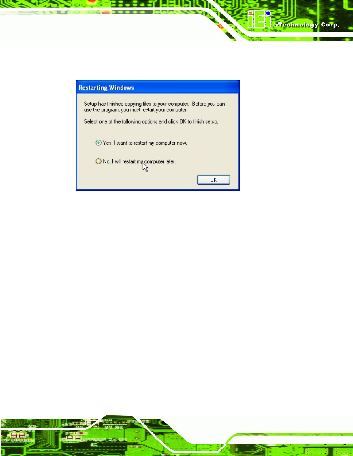 Step 8: Select “Yes, I wish to restart my computer now” and click Finish.