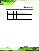 WAFER-LX Motherboard Revision Date Version Changes 24 February, 2009 1.22 Corrected fan voltage label 16 December, 2008 1.21 Corrected pin labels for ATX power 31 July, 2008 1.20 IDE master/slave jumper information added Updated manual template 31 December, 2006 1.10 Sec. 2.4 modified 30 September, 2006 1.