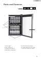 English Parts and Features 5 F 1 2 3 6 4 1. Interior Light 5. Glass Touch Control Panel 2. Glass Shelves (3) 6. Tinted Double Pane Glass Door 3. Chrome Wire Shelf (1) 7. Drip Tray in Back (not shown) 4.