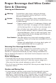 English Proper Beverage And Wine Center Care & Cleaning Cleaning and Maintenance Warning: To avoid electric shock, always unplug your beverage and wine center before cleaning. Ignoring this warning may result in death or njury. Caution: Before using cleaning products, always read and follow manufacturer’s instructions and warnings to avoid personal injury or product damage. General: • Prepare a cleaning solution of 3-4 tablespoons of baking soda mixed with warm water.