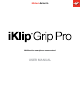 English iKlip Grip Pro Thank you for purchasing iKlip Grip Pro. Your package contains: • iKlip Grip Pro • Wrist hand strap • Device holder • *Bluetooth shutter • Double thread adapter • Quick Start Guide • Registration Card 1x 1x 1x 1x 1x iKlip Grip Pro is the next generation of IK’s well known iKlip Grip. It provides a handheld grip, mini-tripod, monopad, tripod adater and bluetooth shutter for any smartphone or phablet, in a conveniently portable package.