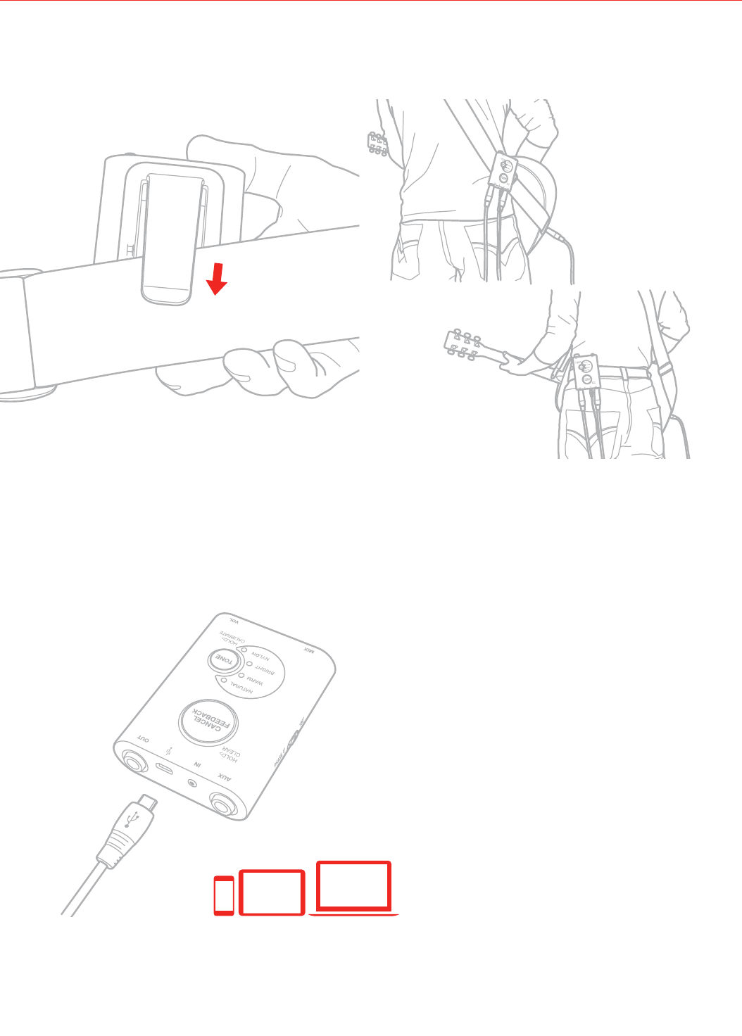 10. 使用腰带夹将iRig Acoustic Stage夹到腰带或乐器肩带上。