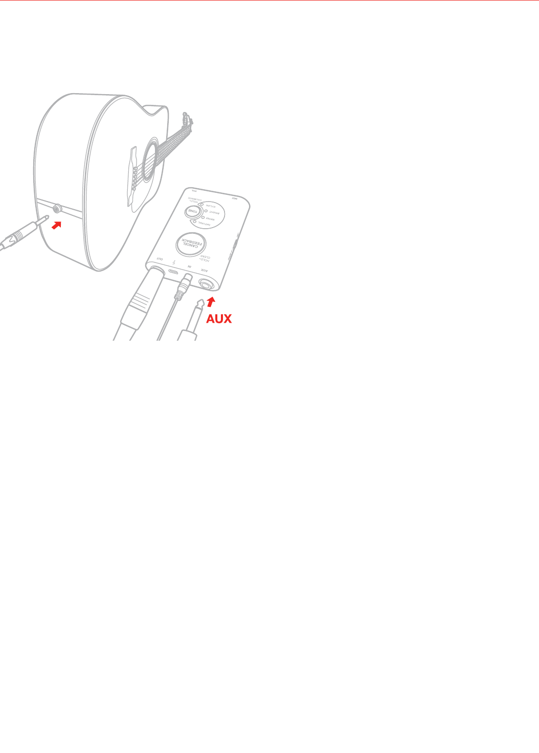 有了iRig Acoustic Stage的AUX输入您可以连接吉他输出到这个输入,混合吉他拾音器输出和iRig Acoustic麦