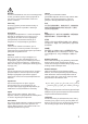 Româna Întrucât materialele din care sunt construiţi pereţii variază, şuruburile pentru fixarea pe perete nu sunt incluse. Contactează dealer-ul tău local pentru consiliere. Türkçe Duvar yapı malzemeleri farklılık gösterebileceğinden duvar montajı vidaları dahil değildir. Uygun vida sistemi için, ilgili araçgereçlerin satıldığı dükkanlara başvurunuz. Slovensky Na rôzny typ stien použite vhodné skrutky. O vhodnom upevnení sa poraďte s odborným predajcom.