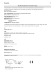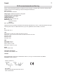 English 3 EU Declaration of Conformity This declaration of conformity is issued under the sole responsibility of IKEA of Sweden AB. The product satisfies the provision for CE-marking according to the following directive(s): RED 2014/53/EU RoHS 2011/65/EU + 2015/863 Type of equipment: Wireless/battery-operated cellular blind Brand name or trade mark: IKEA Type designation: E2102, E2103 Software/firmware: N/A Manufacturer: IKEA of Sweden AB Address: Box 702 SE-343 81 Älmhult SWEDEN Telephone No.