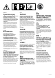 Italiano Latviešu Slovensky AVVERTENZE! BRĪDINĀJUMS! Čistenie Se il mobile si ribalta può causare lesioni da schiacciamento gravi o mortali. Per evitare che questo mobile si ribalti, deve essere fissato alla parete con il/i componente/i di fissaggio incluso/i. Mēbeles apgāžoties var radīt nāvējošas traumas. Lai novērstu mēbeļu apgāšanos, tās jāpiestiprina pie sienas ar komplektā iekļautajiem stiprinājumiem. Pri prevrátení nábytku môže dôjsť k vážnym alebo smrteľným zraneniam.