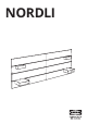 English As wall materials vary, screws for fixing to wall are not included. For advice on suitable screw systems, contact your local specialised dealer. Deutsch Da es viele verschiedene Wandmaterialien gibt, sind Schrauben für die Wandbefestigung nicht beigepackt. Ggf. sollte man sich beim Eisenwarenfachhandel nach geeignetem Befestigungsmaterial erkundigen. Français Les vis et ferrures pour fixer le meuble/l'objet au mur ou au plafond ne sont pas incluses.