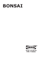 SVENSKA 20 Konsten att odla bonsaiträd är från början kinesisk och kom till Japan ungefär 1000 år e.Kr. Namnet bonsai kommer från japanskans “bon”, som betyder kruka, och “sai”, som betyder träd. Målet med att odla bonsaiträd är att återskapa naturen i miniatyr och få trädet att se mycket äldre ut än vad det verkligen är. Trädet och krukan ska forma en harmonisk helhet och komplettera varandra. Skötselråd 1. Skydda plantan från kyla och drag under transporten. 2.