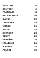 ENGLISH 4 DEUTSCH 6 FRANÇAIS 8 NEDERLANDS 10 DANSK 12 ÍSLENSKA 14 NORSK 16 SUOMI 18 SVENSKA 20 ČESKY 22 ESPAÑOL 24 ITALIANO 26 MAGYAR 28 POLSKI 30