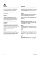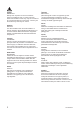 English CAUTION! Do not overtighten. Deutsch ACHTUNG! Nicht überdrehen. Français ATTENTION ! Ne pas trop serrer. Nederlands WAARSCHUWING! Niet te stevig aandraaien! Dansk FORSIGTIG! Må ikke overspændes. Íslenska VARÚÐ! Ekki herða of fast. Norsk ADVARSEL! Ikke stram for hardt. Suomi VAROITUS! Älä kiristä ruuvia liikaa. Svenska VARNING! Överdra inte. Česky UPOZORNĚNÍ! Neutahujte příliš těsně. Español ¡PRECAUCIÓN! No apretar en exceso. Italiano AVVERTENZA! Non stringere eccessivamente.