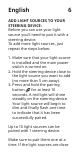 English 6 ADD LIGHT SOURCES TO YOUR STEERING DEVICE: Before you can use your light source you’ll need to pair it with a steering device. To add more light sources, just repeat the steps below: 1. Make sure that your light source is installed and the main power switch is turned on. 2. Hold the steering device close to the light source you want to add (no more than 5 cm away). 3. Press and hold the pairing button for at least 10 seconds. A red light will shine steadily on the steering device.