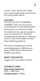 Suomi 27 VALONLÄHTEIDEN LISÄÄMINEN OHJAUSLAITTEESEEN: Valonlähteet tulee yhdistää ohjauslaitteeseen ennen niiden käyttöä. Seuraa näitä ohjeita aina, kun haluat lisätä järjestelmääsi valonlähteitä: 1. Varmista, että valonlähde on oikein asennettu ja päävirta on kytketty päälle. 2. Pidä ohjauslaitetta lähellä valonlähdettä (enintään 5 cm:n päässä). 3. Paina yhdistysnappia vähintään 10 sekunnin ajan. Ohjauslaitteessa tulisi palaa punainen valo.