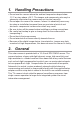 1. Handling Precautions • Do not use the camera where the ambient temperature drops below -10°C or rises above +50°C. The images and component parts may be adversely affected or the camera may not function correctly. • Do not open the case of the camera, unless it is absolutely necessary for setup or installation because there are precision electrical and electronic components inside and accident may result. • Be sure to turn off the power before installing or making connections.