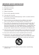 IMPORTANT SAFETY INSTRUCTIONS 1) Read these instructions. 2) Keep these instructions. 3) Heed all warnings. 4) Follow all instructions. 5) Do not use this apparatus near water. 6) Clean only with a dry cloth. 7) Do not block any of the ventilation openings. Install in accordance with the manufacturer's instructions. 8) Do not install near any heat sources such as radiators, heat registers, stoves, or other apparatus (including amplifiers) that produce heat.
