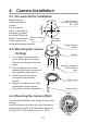 4. Camera Installation 4-1. Pre-work before installation 83.5 Size of hole for cables on the ceiling ø50 - ø60 46 Make holes for cables and to fix a camera. For the hole for cable, a diameter of the opening should be at least 50mm to Holes for camera 60mm. Please make fixing it with utmost care not to give damage to wires. Front side 4-2. Mounting the camera (Ceiling) 1. Put a rubber sealing gasket on the housing base, paying attention to allow for the screw holes. 2.