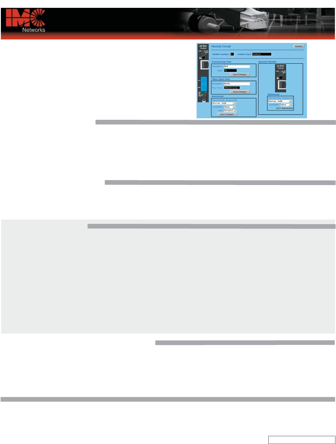 able. In addition, IMC Networks has the most extensive line of protocol-independent (iMcV-S2MMs, iMcV-S2SMs and iMcV-M2MMs) fiber mode conversion mod-