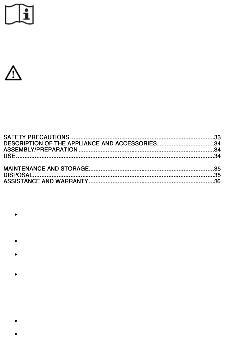 - DESCRIPTION OF THE APPLIANCE AND ACCESSORIES
