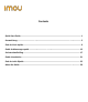 - 3 Fonctionnement avec l’application Imou Étape 1 : scannez le code QR figurant sur l’unité ou recherchez « Imou » dans Google Play ou App Store, téléchargez et installez l’application. Étape 2 : exécutez l’application Imou et inscrivez-vous pour la toute première utilisation. Étape 3 : Branchez la caméra à l’aide de l’adaptateur d’alimentation. Étape 4 : patientez jusqu’à la fin du redémarrage ; l’indicateur lumineux de la caméra clignote en vert.