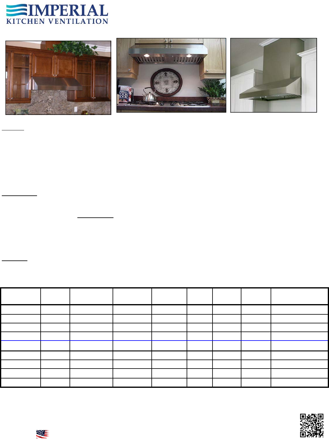 Distance Codes: Check local city, county and cooking appliance specifications. UL tested at 36” above cooking surface.