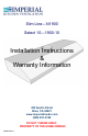 Slim Line—N1900 Select 10—1900-10 Installation Instructions & Warranty Information 425 Apollo Street Brea, CA 92821 www.imperialhoods.com (800) 851-4192 DO NOT THROW AWAY, PROPERTY OF THE HOME OWNER! UNDRCAB/9.