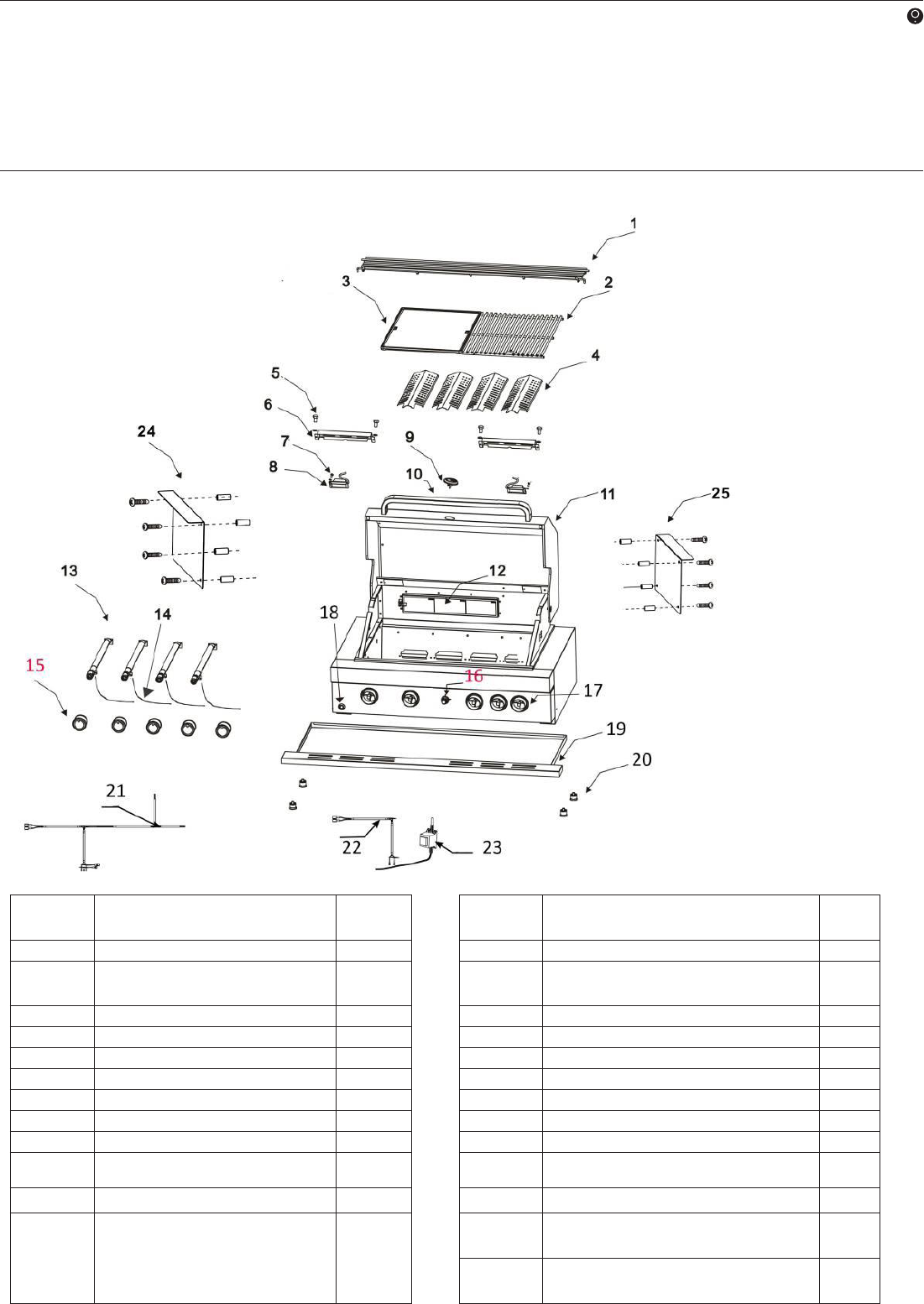 12 Infrared rear burner 1 24 Built in supporting bracket-