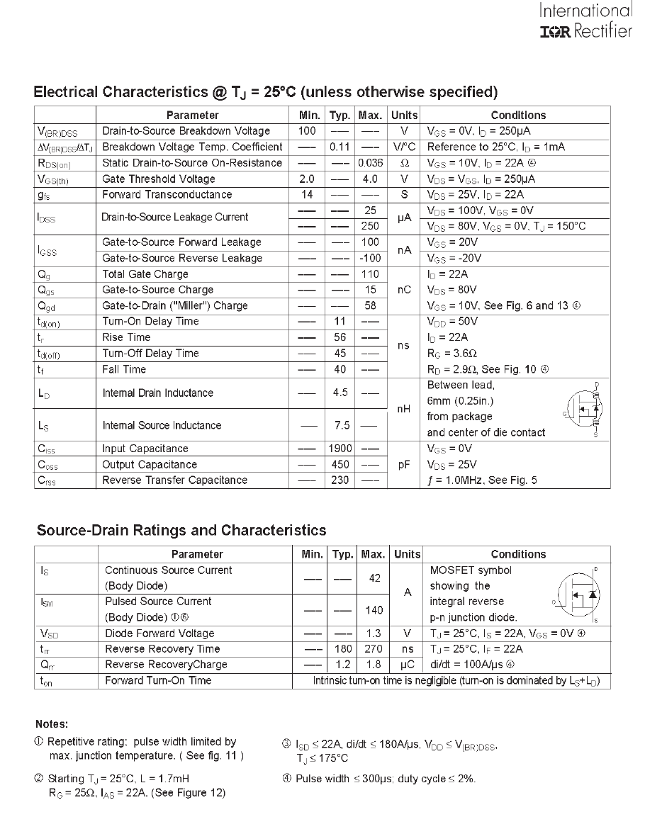 IRF1310NPBF, MOSFET N channel 42A voltage:100V