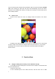 colleagues via MMS and email. 4.4.1.1 Open camera Click on the camera can turn on the camera. Warm prompt: in the camera's interface, you can click " " fast switching to the camera to video camera, click to panoramic photo mode Taking a photo 1. During the view-finding mode, adjust the lens to allow what is being photographed to appear in the viewfinder. 2. After framing the picture you wish to take, keep the camera steady and press” to take photo; 3.