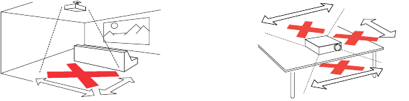 • Place the projector in a horizontal position no greater than 15 degrees off