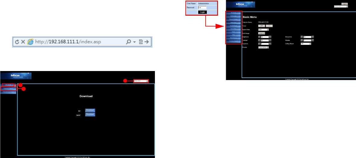 1 Typ het adres van de projector in de adresbalk van uw browser en druk op
