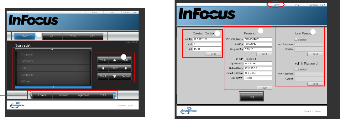 2 Via de pagina Tools (Extra) kunt u de projector beheren, de LAN-