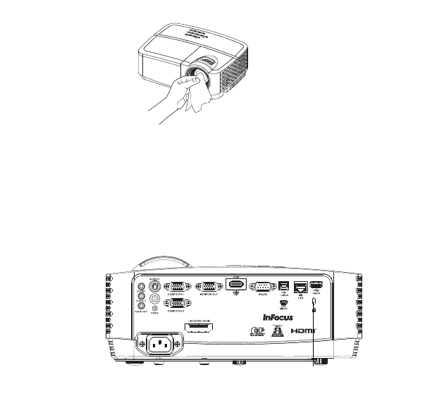 • Raak de projectorlens niet aan of blokkeer deze niet omdat dit de projectorlens kan