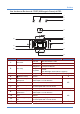 Préface Vue de dessous 2 3 4 2 90.5 71.0 65.0 1 51.5 109.0 ÉLÉMENT ÉTIQUETTE 76.0 DESCRIPTION VOIR LA PAGE : 10 1. Pédale de réglage Faites pivoter la pédale de réglage pour régler la position de l'angle. 2. Trous de support au plafond Utilisez uniquement avec un système d'installation au plafond InFocus (réf. PRJ-MNT-UNIV). Contactez votre revendeur InFocus ou visitez le site www.infocusstore.com. 3.