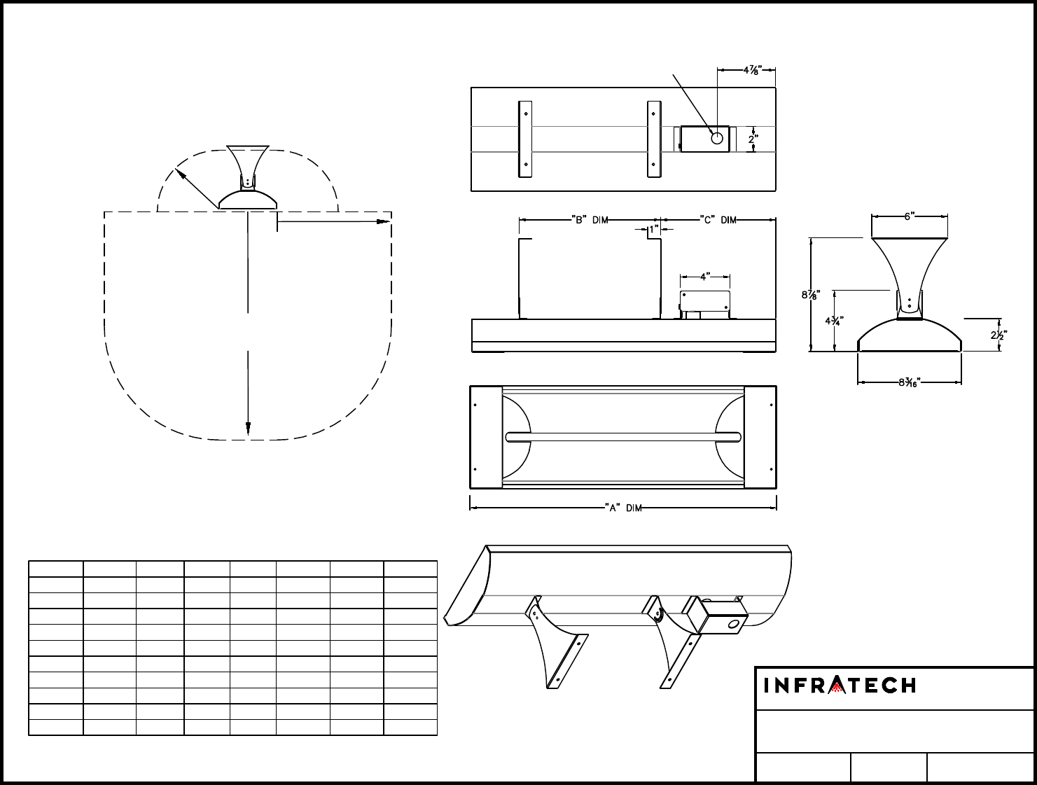 MODEL "A" DIM. WATTS VOLTS AMPS BTU's