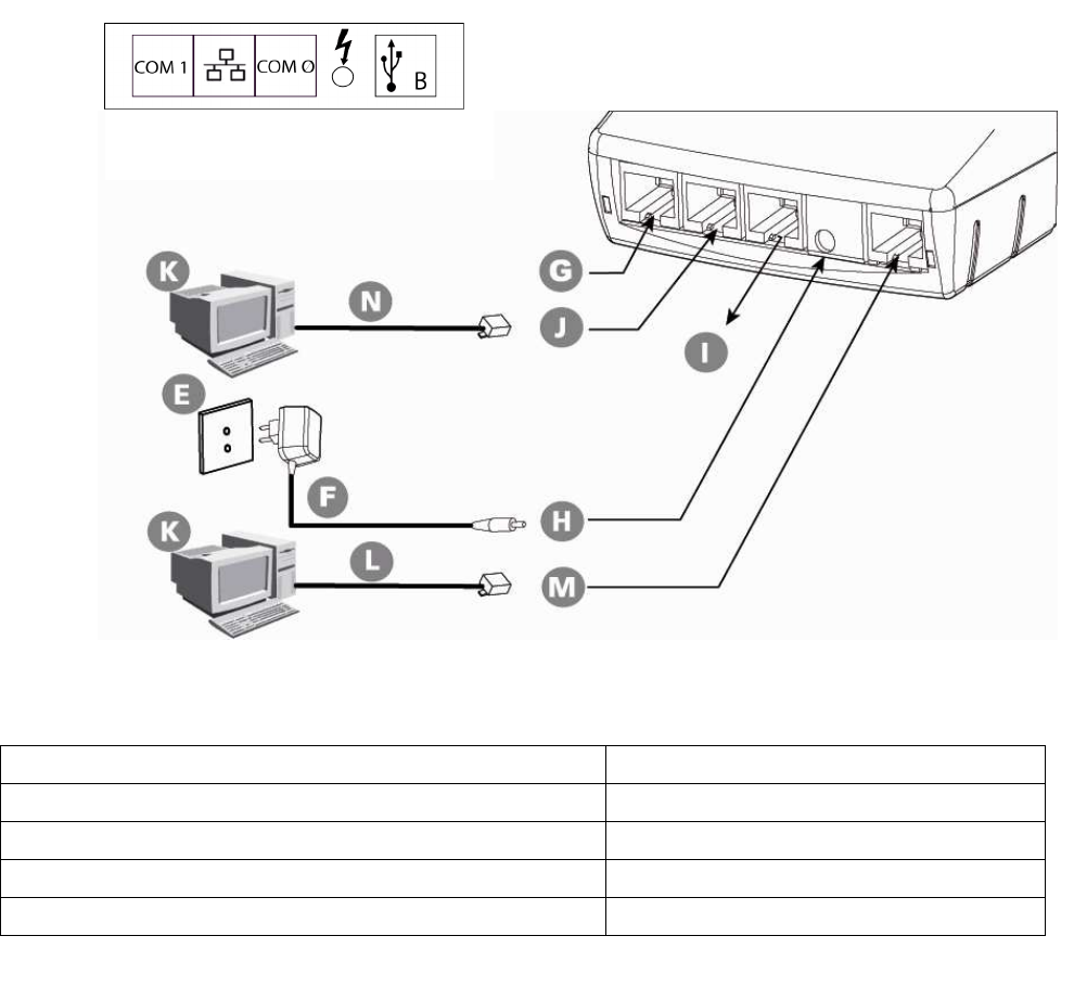 RS232 (4- point connector) H = power supply input - 2pole sockets 1 A