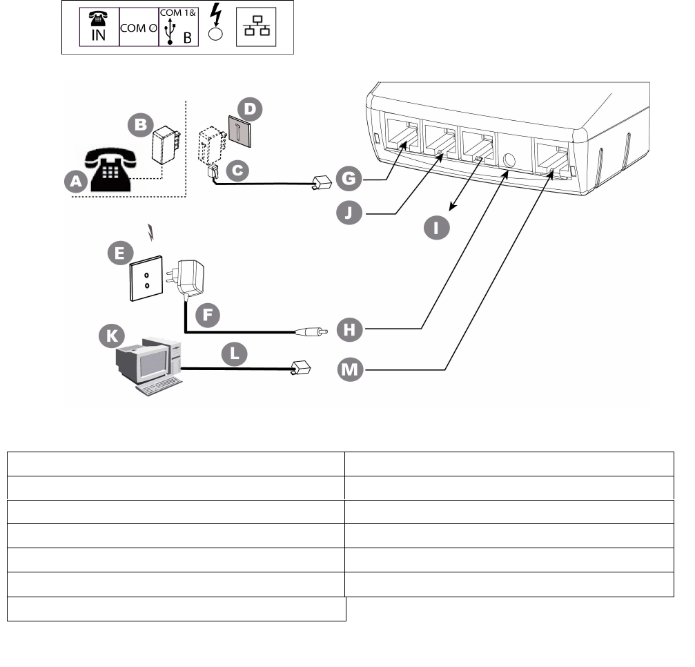 G = telephone network - port RJ11 (telephone cable 3m) H = power supply input - 2pole sockets 1 A