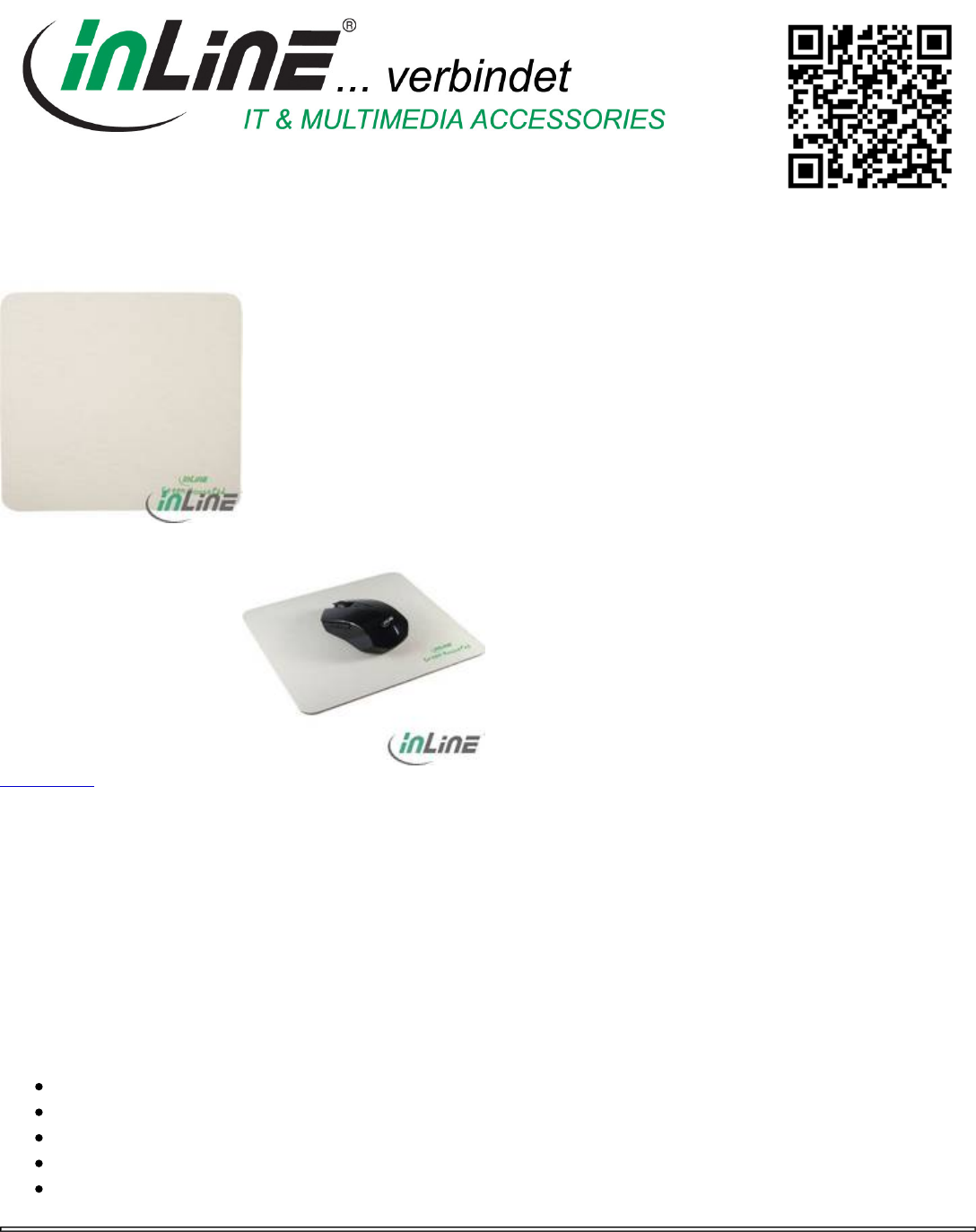 InLine® Maus-Pad Recycled, Baumwolle / natur, 220x200x3mm