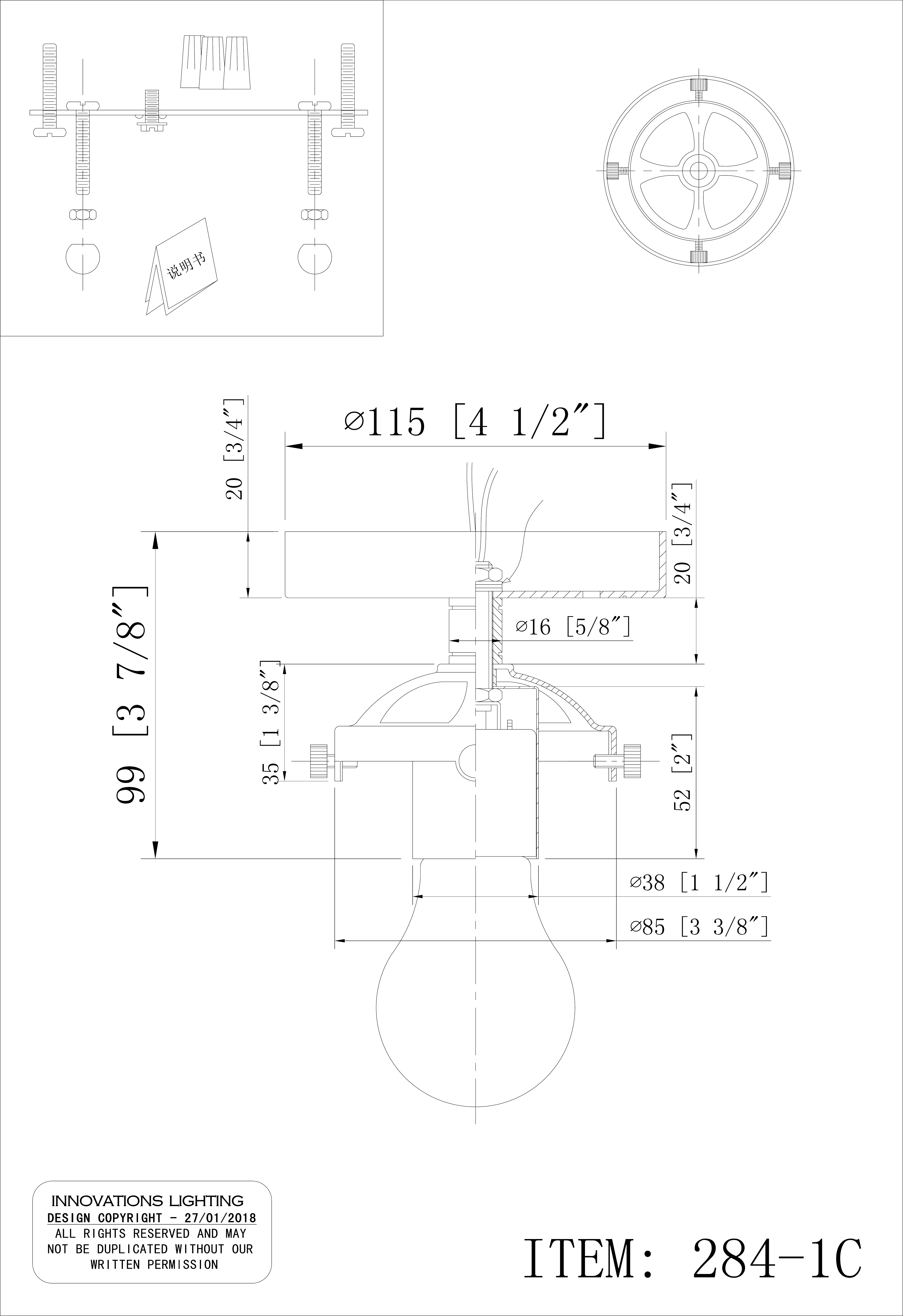 E S 2115 [4 1/27] §I_I 216 INNOVATIONS LIGHTING DESIGN COPYRIGHT 27/01/2018 ALL RIGHTS RESERVED AND MAY NOT BE DUPLICATED WITHOUT OUR WRITTEN PERMISSION 238 [1 1/2”] 285 [3 3/8”] [TEM: 284-1