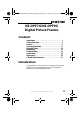 NS-DPF7G-DPF9G_09-0706_MAN_ENG_V4.fm Page 3 Thursday, August 13, 2009 6:34 AM NS-DPF7G/NS-DPF9G Digital Picture Frames Contents Introduction . . . . . . . . . . . . . . . . . . . . . . . . . . . . . . . . . . . .3 Safety information . . . . . . . . . . . . . . . . . . . . . . . . . . . . . .4 Features. . . . . . . . . . . . . . . . . . . . . . . . . . . . . . . . . . . . . . . .5 Setting up your frame . . . . . . . . . . . . . . . . . . . . . . . . . . .11 Using your frame . . . . . . . . . . . . . . . . .