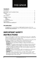 Contents Introduction . . . . . . . . . . . . . . . . . . . . . . . . . . . . . . . . . . . . . . . . . . . . . . . . . . . . . . . . . . . . 2 IMPORTANT SAFETY INSTRUCTIONS . . . . . . . . . . . . . . . . . . . . . . . . . . . . . . . . . . . . . 2 Features . . . . . . . . . . . . . . . . . . . . . . . . . . . . . . . . . . . . . . . . . . . . . . . . . . . . . . . . . . . . . . . . 3 Dimensions . . . . . . . . . . . . . . . . . . . . . . . . . . . . . . . . . . . . . . . . . . . . . . . . . . . . . . . .