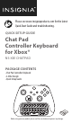 Please see www.insigniaproducts.com for the latest Quick Start Guide and troubleshooting. QUICK SETUP GUIDE Chat Pad Controller Keyboard for Xbox® NS-XB1CHATPAD PACKAGE CONTENTS • Chat Pad Controller Keyboard • 2.4Ghz Dongle • Quick Setup Guide Before using your new product, please read these instructions to prevent any damage.