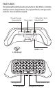 FEATURES This lightweight backlit keyboard easily attaches to Xbox Wireless Controllers making it easier to navigate movies, message with friends, enter passwords, and more. No extra batteries required. Dongle Storage Compartment Power input Collapsible 3.5mm headset jack Rubber cover 2.4Ghz Dongle Pairing button LED indicator 3.